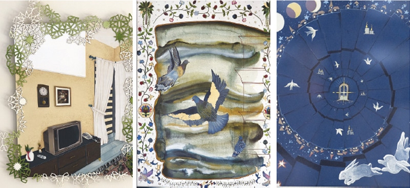 “Khamsa” refers to five in Arabic, and uses the metaphor of the hand to suggest collectivity: five distinct practices connected through a shared lineage of miniature painting.