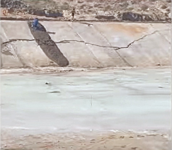 THATTA: A section of the newly built concrete lining of the Kalri Baghar (KB) Feeder developed wide cracks as soon as water was released into the irrigation channel.