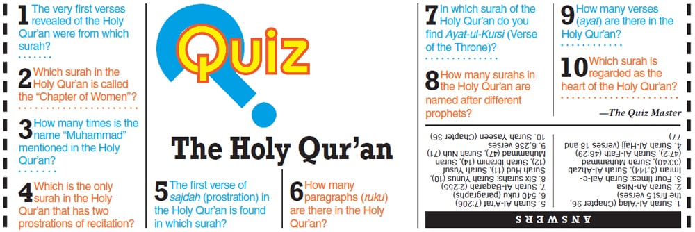 Quiz: The Holy Quran The Quiz Master Published February 28, 2026 Updated February 28, 2026 06:51am 0 Jump to comments Join our Whatsapp Channel Published in Dawn, Young World, February 28th, 2026
