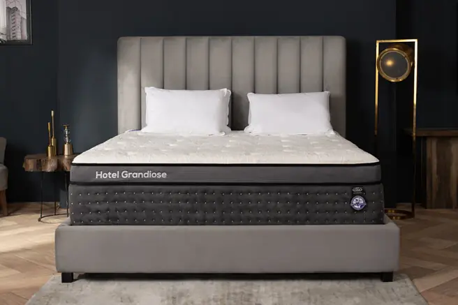 Hotel Grandiose offers a balanced, structured feel. The spring core provides firm underlying support, while latex and memory foam layers introduce controlled cushioning at the surface. It does not feel overly soft or deeply sinking.