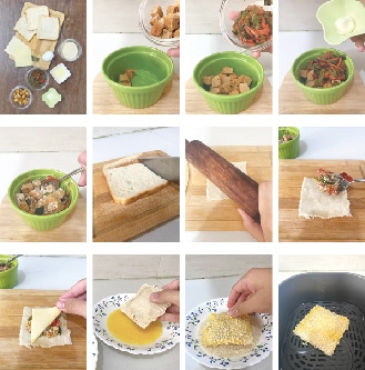 Since almost all the ingredients we are using are already cooked, except for the egg coating, we only need to toast the outside until it is crispy and golden. You can change the filling to anything you like.
