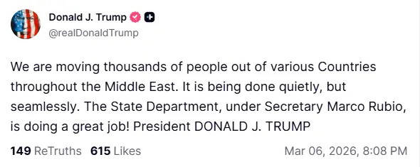 “It is being done quietly, but seamlessly,” he has written on Truth Social, adding that US Secretary of State Marco Rubio “is doing a great job”.