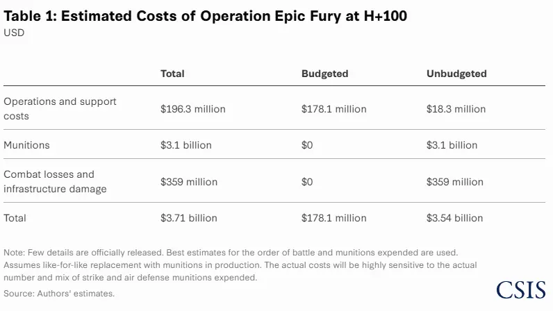 A Washington-based non-partisan think tank estimates that Operation Epic Fury is costing the US government nearly $900 million per day.