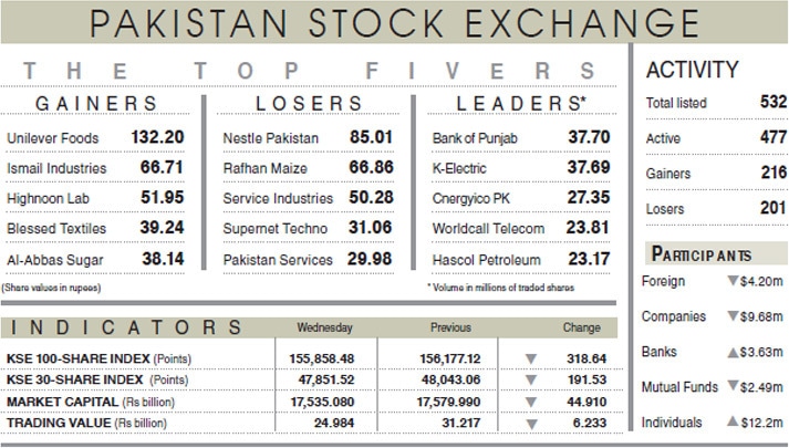 Topline Securities Ltd reported that the benchmark KSE-100 index closed the session at 155,858 points, down by 318 points or 0.20 per cent. The market remained range-bound throughout, as investors remained cautious amid ongoing volatility in international oil prices, keeping overall sentiment mixed.