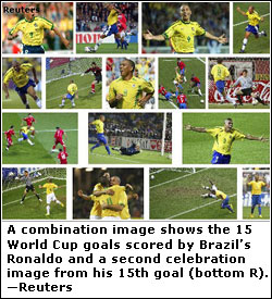 “He is a player that records belong to him,'' Brazil coach Carlos Alberto Parreira said on Tuesday. “He is again on top of every player in the world. He's scored more goals than any player at the World Cup. His name is on top.”