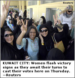 KUWAIT CITY: “I have waited a very long time for this historic day,” said Iqbal Moumtaz as she cast her vote in Kuwait’s first election open to women. “I thought I would die before voting at least once in my life.”