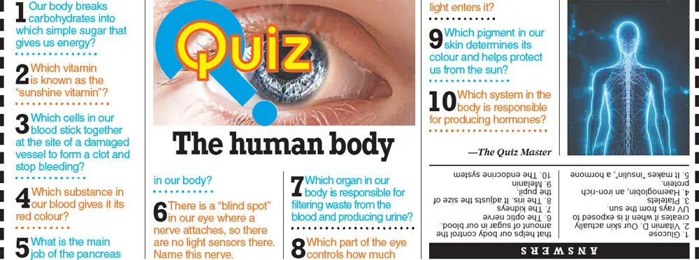 Quiz: The human body The Quiz Master Published April 25, 2026 Updated April 25, 2026 05:08am 0 Jump to comments Join our Whatsapp Channel Published in Dawn, Young World, April 25th, 2026