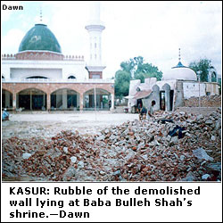 KASUR, Aug 25: The mega project of the reconstruction of Hazrat Baba Bulleh Shah’s shrine to facilitate the devotees has met with an inordinate delay, thanks to the indifference of the authorities concerned. The Sufi poet’s annual Urs is beginning on Saturday (today).