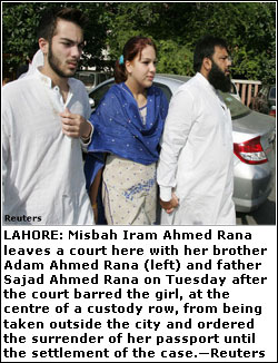 Misbah denied she was under any pressure from her father. She told a news conference earlier this month that she would like to keep in touch with her mother but does not want to live with her in Scotland.—AFP