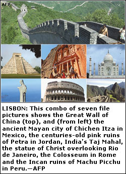 LISBON, July 8: Seven “new” wonders of the world including the Great Wall of China, the Taj Mahal and the Colosseum in Rome were chosen overnight by nearly 100 million Internet and phone voters, upsetting purists.