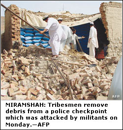 MIRAMSHAH, July 23: Heavy fighting killed at least 35 militants and two soldiers in the tribal areas, the military said on Monday. The latest clashes in the restive North Waziristan Agency bordering Afghanistan came as pro-Taliban groups there warned Pakistani soldiers to quit fighting or face the “gift of death” through new suicide attacks.