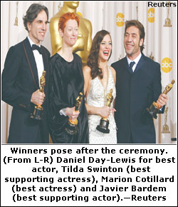 Following is a complete list of winners at the 80th annual Academy Awards, held in Hollywood on Sunday.