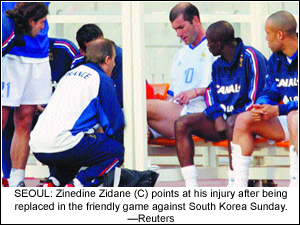 SEOUL, May 27: World champions France suffered a major setback on Monday when they learned that their star playmaker Zinedine Zidane was almost certain to miss their first two games through injury.