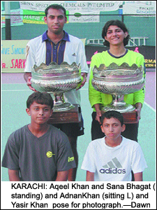 KARACHI, May 31: Aqeel Khan retained the anti-tobacco day tennis tournament title when he defeated Nomi Qamar 6-0 4-6 6-3 at the Karachi Club Friday.