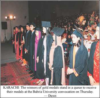 KARACHI, April 28: As many as 326 graduates were conferred bachelors and masters degrees in business administration software and computer engineering programmes at the second convocation of the Bahria University, Karachi campus on Thursday. The chief of the Naval Staff Admiral Shahid Karimullah, who is also the pro-chancellor of the Bahria University handed over degrees, merit certificates and gold medals to students in the presence of senior naval officials, civil dignitaries and parents of students.