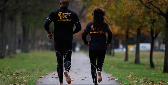 The 35-year-old co-founder of the personal training company Barefoot Running UK says she's lost count of the times people yell "where are your shoes?" as she and partner David Robinson negotiate London's parks and pavements to indulge their passion and train their clients.