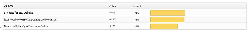 What should be the government's policy on banning websites? - 18,117votes
