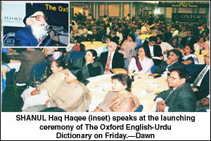 Introducing the audience to the dictionary, the OUP managing director, Ameena Saiyid, said that it had taken Mr Haqee 14 years to edit the The Oxford English-Urdu Dictionary which was the bilingual edition of The Concise Oxford Dictionary. “The Oxford English-Urdu Dictionary has translations of illustrative sentences which enable a learner of the English language to familiarize himself with current English usage. It also incorporates new technical words, such as database and spamming,” she explained.