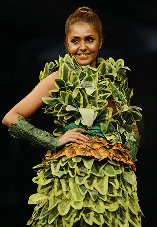 A Pakistani model presents a creation by designer Zeeshan Bariwala on the opening day of Karachi Fashion Week, in Karachi, Pakistan. — AP PhotoNusrat and Haris showed a very wearable collection featuring leopard print fused with solids such as red and purple with more animal prints. Most of the outfits spot-on with sheer, shimmer fabric and bubble-cut dresses in essentially women’s wear. Model Rubya Chaudhry stood out in a black number with a sequined neckline as did Nadia Hussain in a red and black outfit with an illusion neckline.