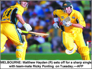 Hayden hit only one four but also thumped four sixes in his 87-ball innings.