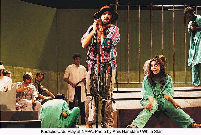 Sunil Shankar’s version of Marat/Sade, translated by Dheeraj Laal Chaneeliya and Kashif Hussain and performed at the National Academy of Performing Arts’ in-house auditorium on Saturday evening, was a reasonable effort on two counts: one, it managed to recreate the spectacle that the play is known for; two, it did not tamper with the inherent, unresolved uncertainty of the drama, therefore compelling the audience to put their thinking caps on. The action takes place a few years after the French Revolution in the asylum of Charenton. The asylum’s director Coulmier (Wusullah Khan) tells the audience that they’re about to see a play directed by the Marquis de Sade (Nazrul Hasan) with its characters played by asylum inmates to show the sequence of events that led to the death of the revolutionary leader Jean-Paul Marat (Hassan Raza) at the hands of Charlotte Corday (Joshinder Chagger). The period ranges from the time of the French revolution to Marat’s death in 1808. Coulmier claims the play will shed light on the latest treatment of patients through education and art. He also believes that the drama will entail a patriotic view of the post-revolution France.
