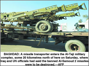 UN experts say the range of the al-Samoud 2 missile exceeds the 150-km (93-mile) limit set in U.N. resolutions. Chief weapons inspector Hans Blix gave Iraq until March 1 to begin destroying the rockets.