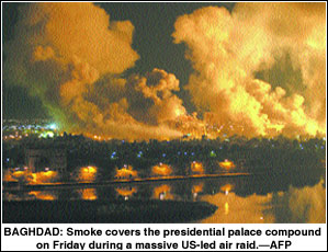 BAGHDAD, March 21: The United States unleashed its full military might against Iraq on Friday with waves of air strikes that turned much of Baghdad into an inferno, as Washington declared President Saddam Hussein was “finished”.