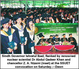 The convocation was attended by a large number of celebrities, including nuclear scientist Dr Abdul Qadir Khan, lawyers, educationists, engineers and parents of the graduates receiving degrees.
