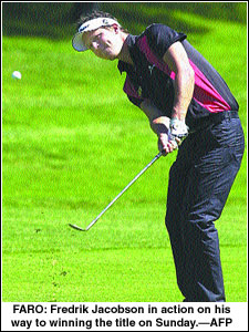 FARO (Portugal), April 21: Sweden’s Fredrik Jacobson chipped in for an eagle at the 17th to win the Algarve Portuguese Open title on Sunday, his second European Tour victory of the season.