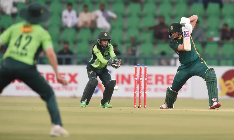 Tazmin Brits plays a shot against Pakistan in Lahore on September 19. — White Star/Arif Ali